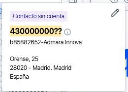 Un Contacto Sin Cuenta es un cliente o proveedor que aparece en una factura, existe en Adaral pero no en tu software contable porque no tiene todavía cuenta contable asociada.